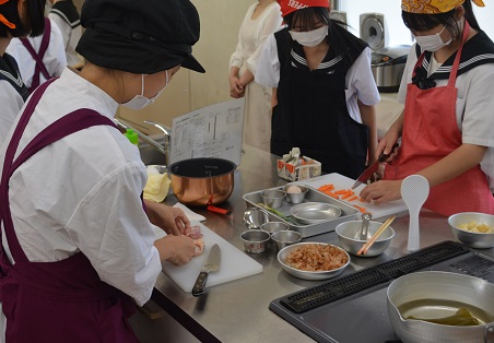 当日は午前と午後の二部に分けて、希望していただいた学科・コースの実習などを体験してもらいました。実習を体験してもらった後には部活動紹介を行い、若狭東高校の魅力を知ってもらうことができました。