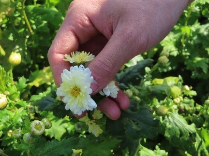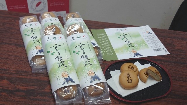 新商品として開発した玄白饅頭薬用植物「コウギク」