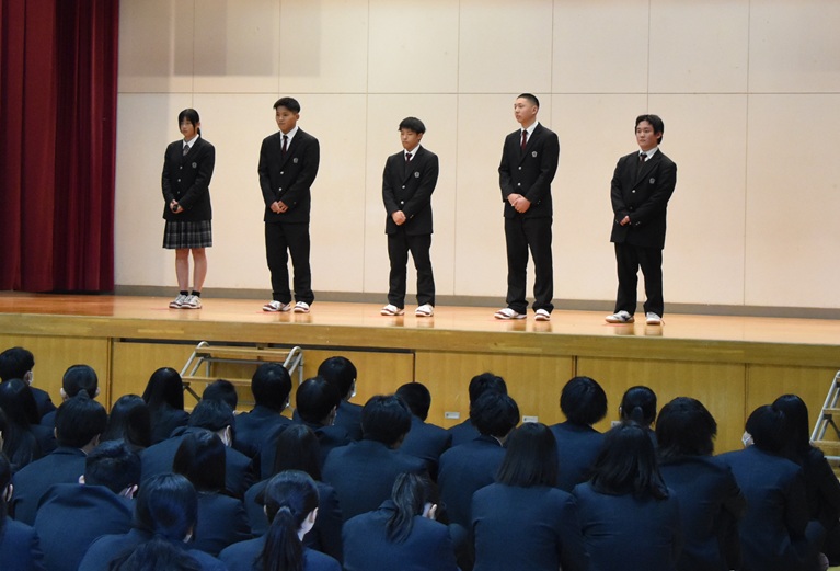 3月18日(火)に、全国選抜大会に出場する4選手の壮行式が行われました。