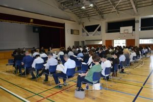 内容は生徒会執行部が公約として掲げる「体操服での登下校を可能にする」ことと「制服移行期間の廃止」についてです。5月に真夏日を記録する近年の気象状況を考え、生徒会執行部では前述の校則改定運動を行っています。その活動の一環として、PTA役員の方からもご意見をお聞きしたいと企画されました。役員の方からは「熱中症対策として効果的だと思う」など、肯定的な意見がほとんどでした。20分ほどで終了しましたが、生徒会とPTA役員が意見交換できる有意義な時間となりました。