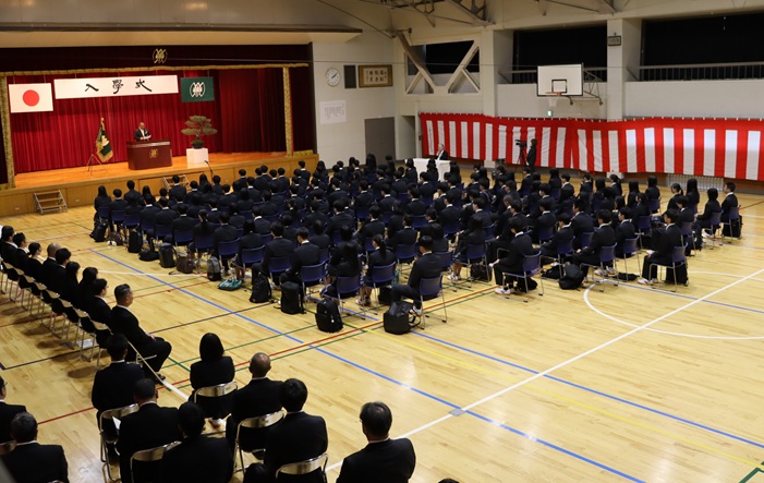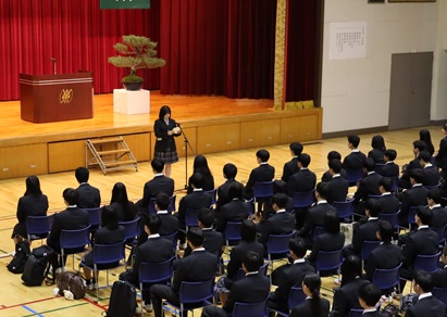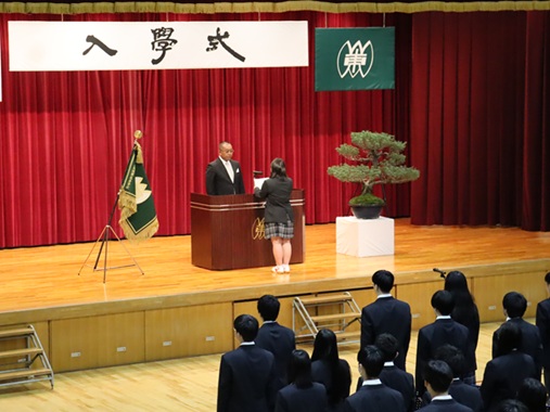 式では、入学許可宣言に続き、校長より新入生に向けた式辞がありました。また、新入生代表による宣誓と在校生代表による歓迎のことばが述べられ、新入生の新たな学校生活の始まりを感じさせる式典となりました。